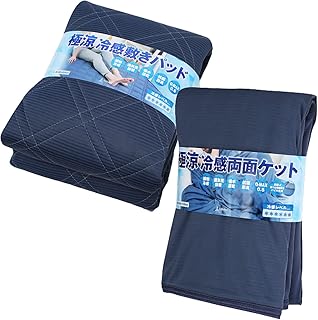極涼 敷きパット タオルケット 接触冷感 QMAX0.5 夏 ひんやり 抗菌 涼感 3.8倍冷たい 瞬間冷却 クール 吸水速乾 丸洗い tobest ブルー シングル 2点セット