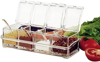 Candora® ふよう)調味料入れ 调味料ボトル スパイス ラック 塩 コショウ 砂糖入れ クックポット 有機ガラス 瓶 保存容器 匙付け 家庭キッチン用 業務用 四個セット (ホワイト)