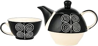 KITTENS Excellent Gift Article - Twin Set of Black Hand Painted Ceramic Pot & Cup