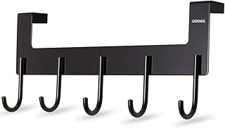 UDENIS ドア掛けハンガー フック 丈夫 衣類 コート バッグ ローブ タオル 浴室 クローゼット ドア裏ハンガー 頑丈 防錆 軽量 5フック アルミニウム ブラック