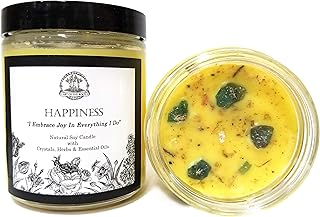 Happiness Soy Affirmation キャンドル ブルーグリーンアパタイトクリスタル付き 喜び/ポジティブなエネルギー&楽観主義(ウィッカ/異教徒/瞑想/マジック)