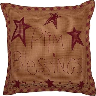 VHC Brands 9inepatch Star Prim Blessings テキスト コットン プリミティブ 寝具 刺繍 スクエアピロー バーガンディレッド