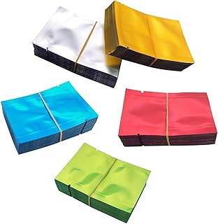 Luckkyme 500パック アルミホイルバッグ マットサンプルパック フラットオープントップ 再密封可能 ティアノッチ アルミホイルマイラーバッグ 5 x 7 cm/ 2x 2.7インチ 5色