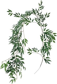 Supla 1.7m Artificial Hanging Willow Leaves Vines Twigs Fake Silk Willow Plant Leaves Garland String in Green for indoor/outdoor Wedding Decor Jungle Party Supplies Greenery Crowns Wreath
