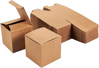 プレミアムクラフトギフトボックス 50パック 3 x 3 x 3インチ ブラウンペーパーギフトボックス 蓋付き ギフト カップケーキボックス クラフト用 組み立て簡単