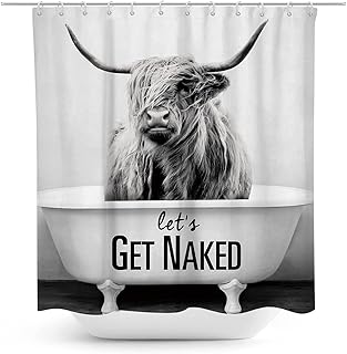 Coxila ハイランド牛牛 シャワーカーテン ネイキッドグレー ウェスタン 60 x 72インチ ポリエステル生地 防水 プラスチックフック 12個パック