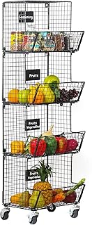 Nandae メタルワイヤーバスケット キャスター&取り外し可能な黒板付き 4段壁掛け収納バスケットオーガナイザー 積み重ね可能 フルーツバスケット ユーティリティカートラック 野菜 キッチン パントリー用