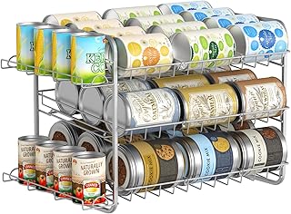 Bextsrack 缶ラックオーガナイザー パントリー用 積み重ね可能 缶収納ホルダー サイドバスケット付き 最大42缶収納 キッチン パントリーキャビネット用 シルバー