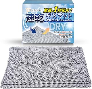 Latuna バスマット 速乾 大判 マイクロファイバー タオル地 抗菌 (ライトグレー, 50x80cm)
