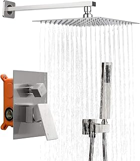 FRUD シャワーシステム 10インチ ブラッシュドニッケル シャワー蛇口セット 完全 バスルーム レインフォール シャワーヘッド ハンドヘルドコンボ ラフインミキサーバルブボディとトリム付属