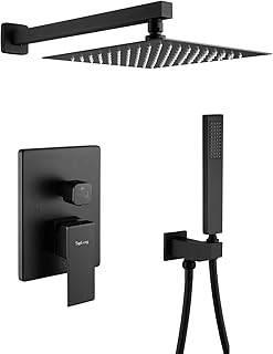 TapLong マットブラック 浴室 高級シャワーシステム 壁掛けシャワー蛇口セット 高圧10インチ四角 レインシャワーヘッド 手持ちシャワーヘッド (ラフインバルブボディとトリム付き)