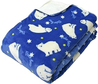 2枚合わせ毛布 ブランケット しろくま柄 シングル 140×200cm (ブルー)